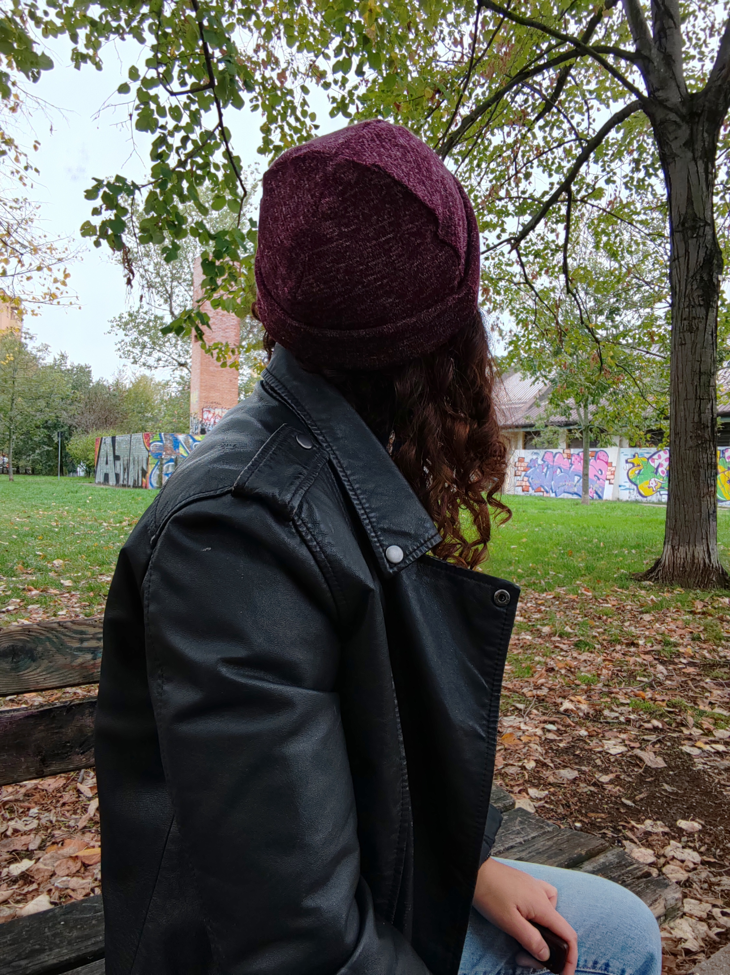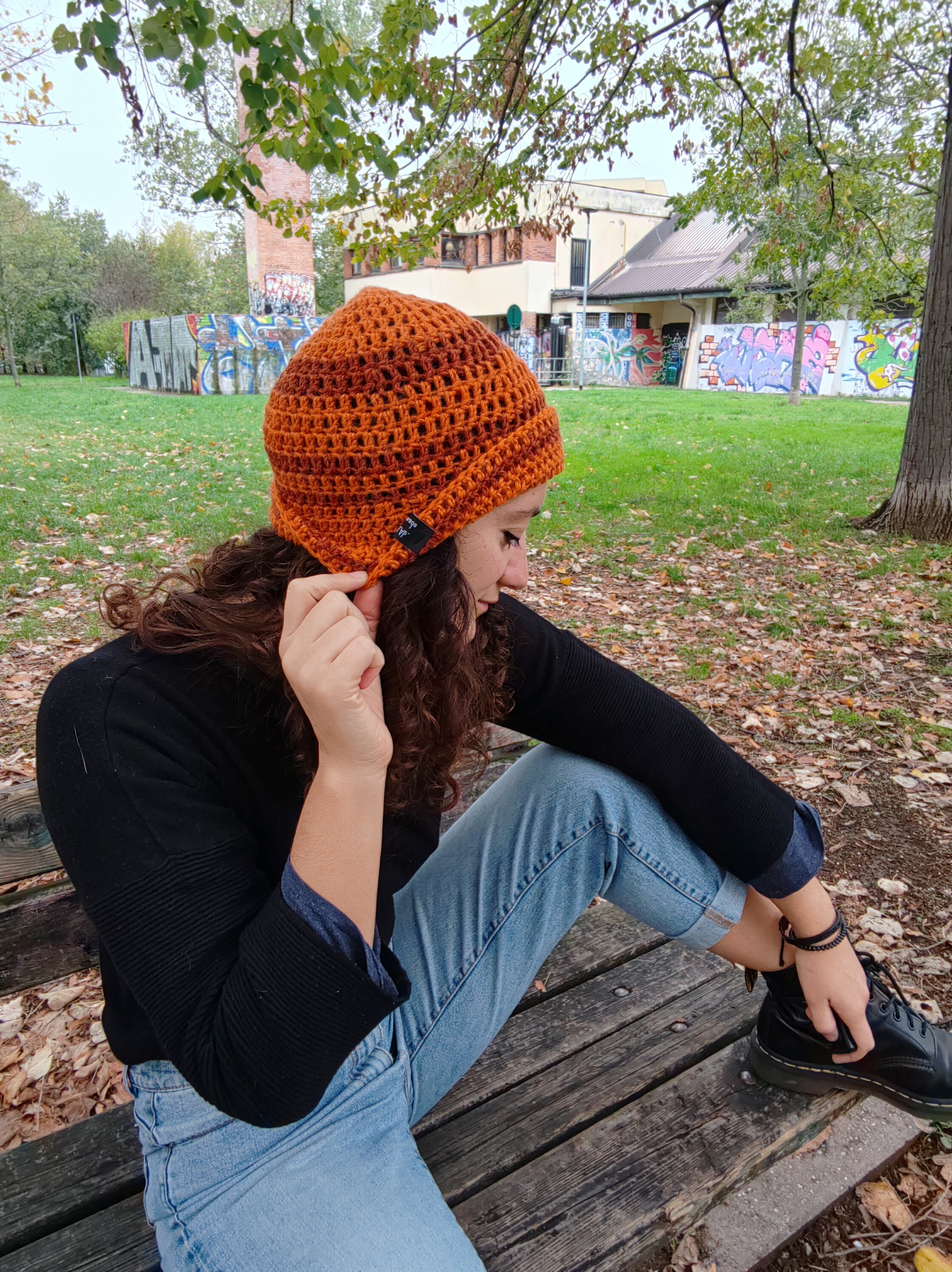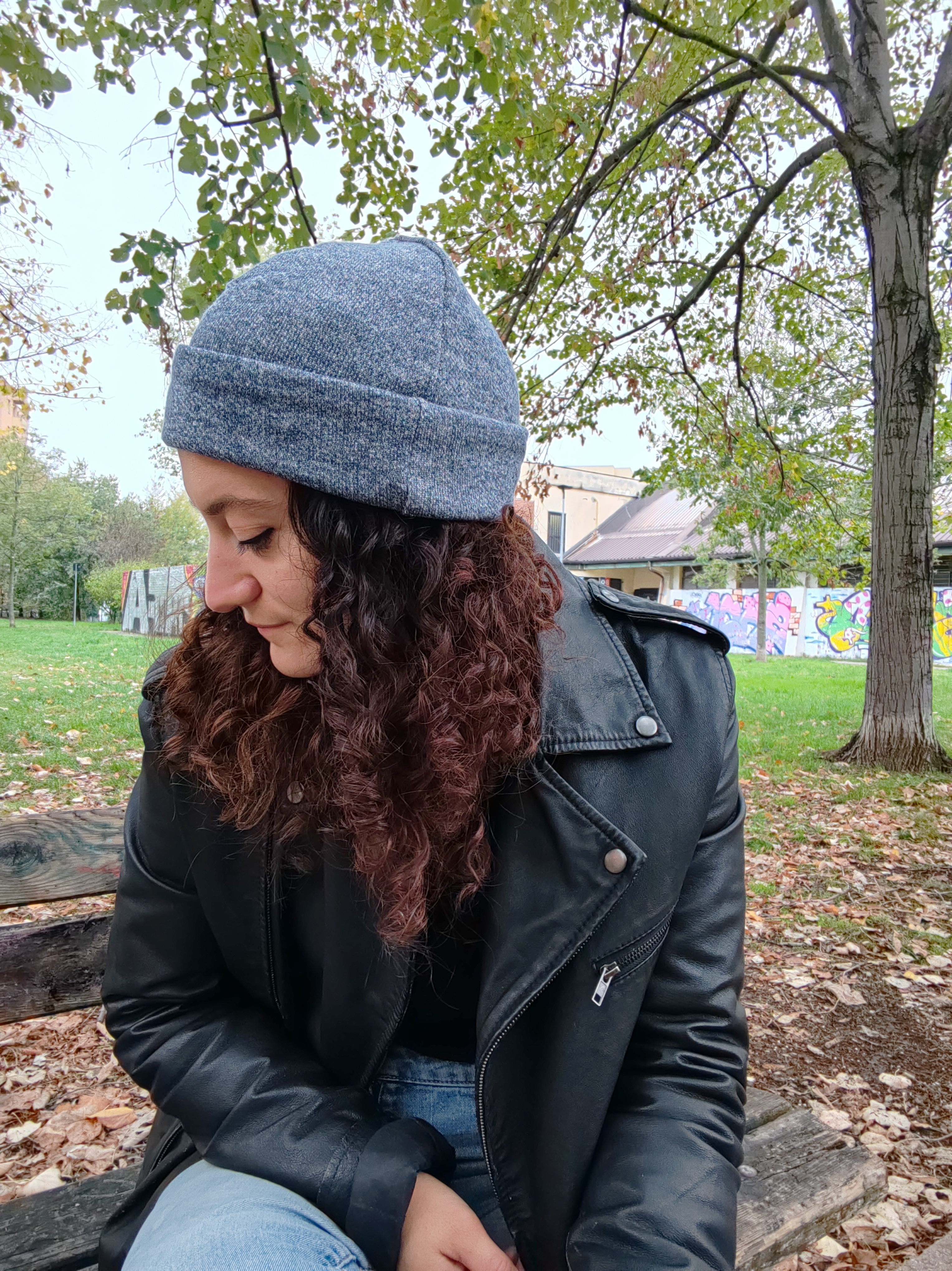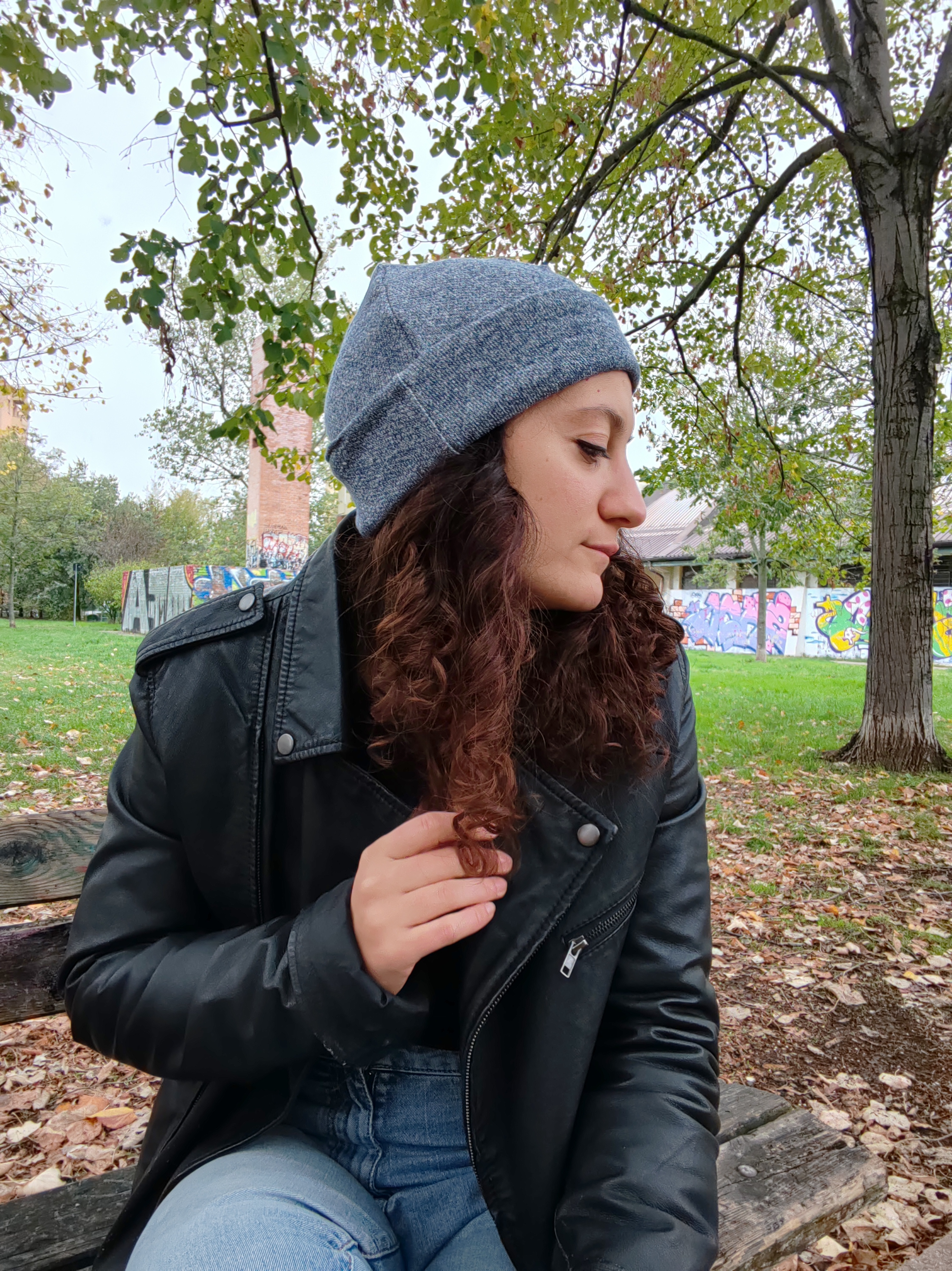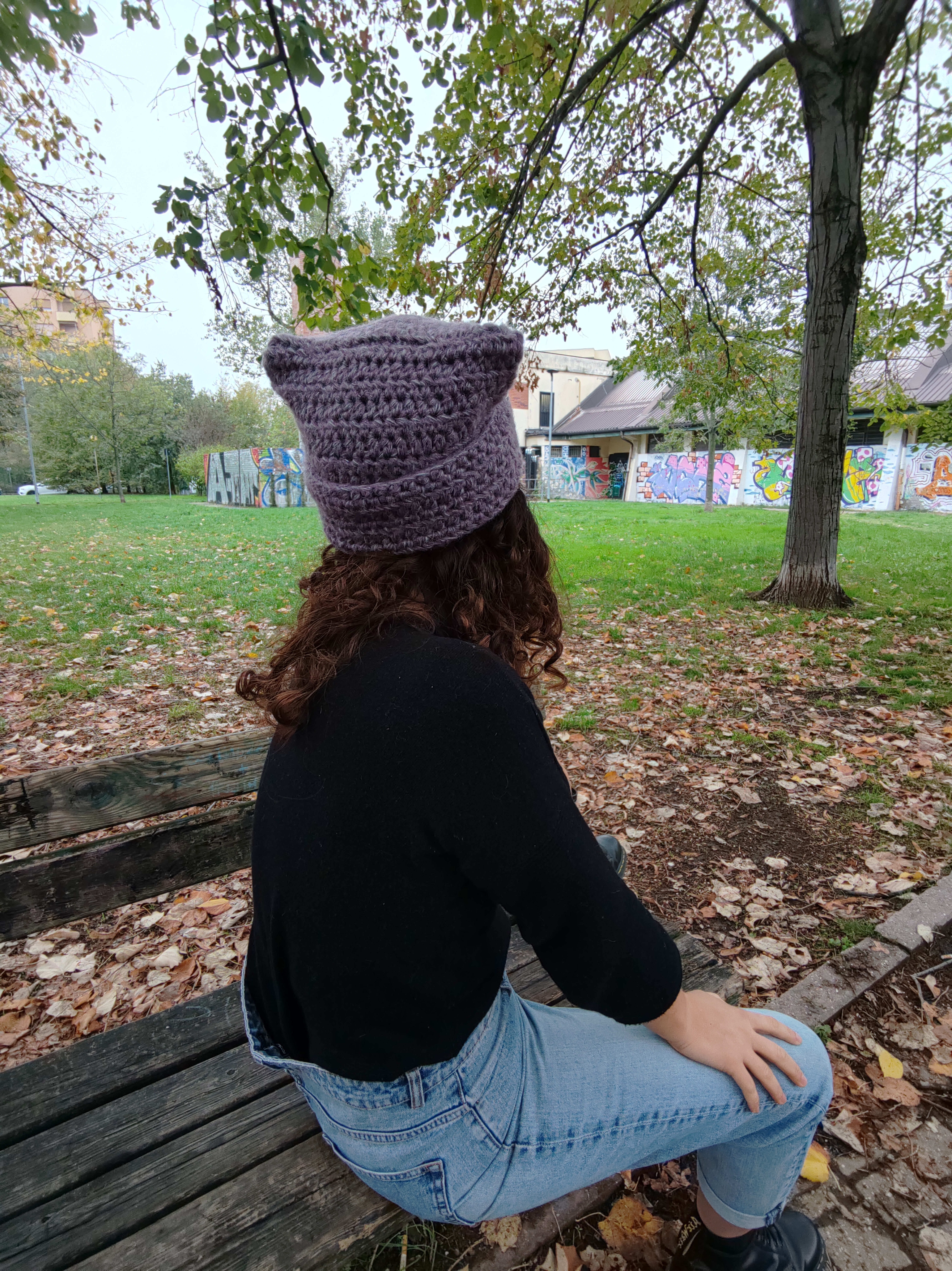 Cuffia leggermente svasata, in stile bucket. Puoi portarla con il risvolto o senza.