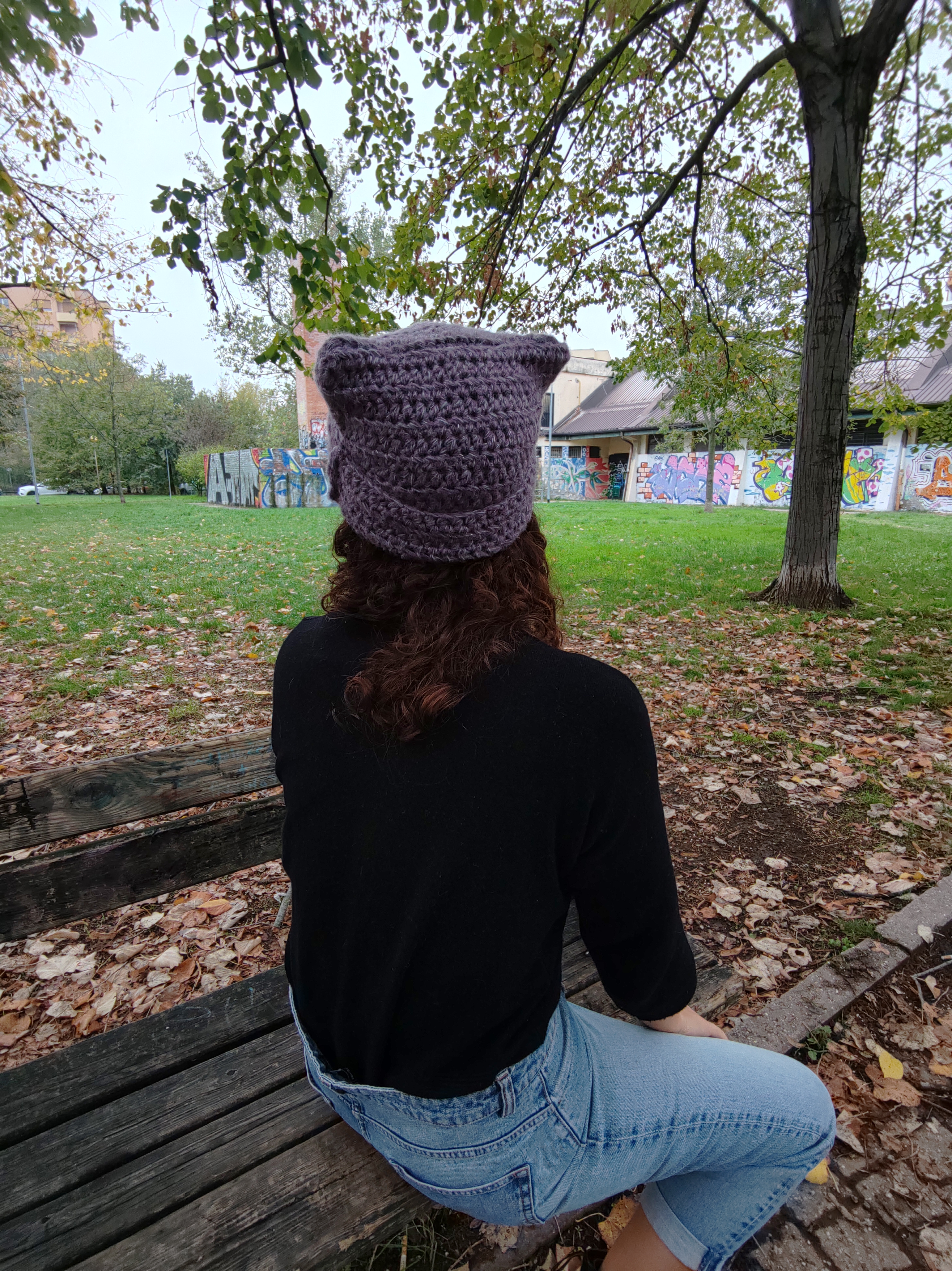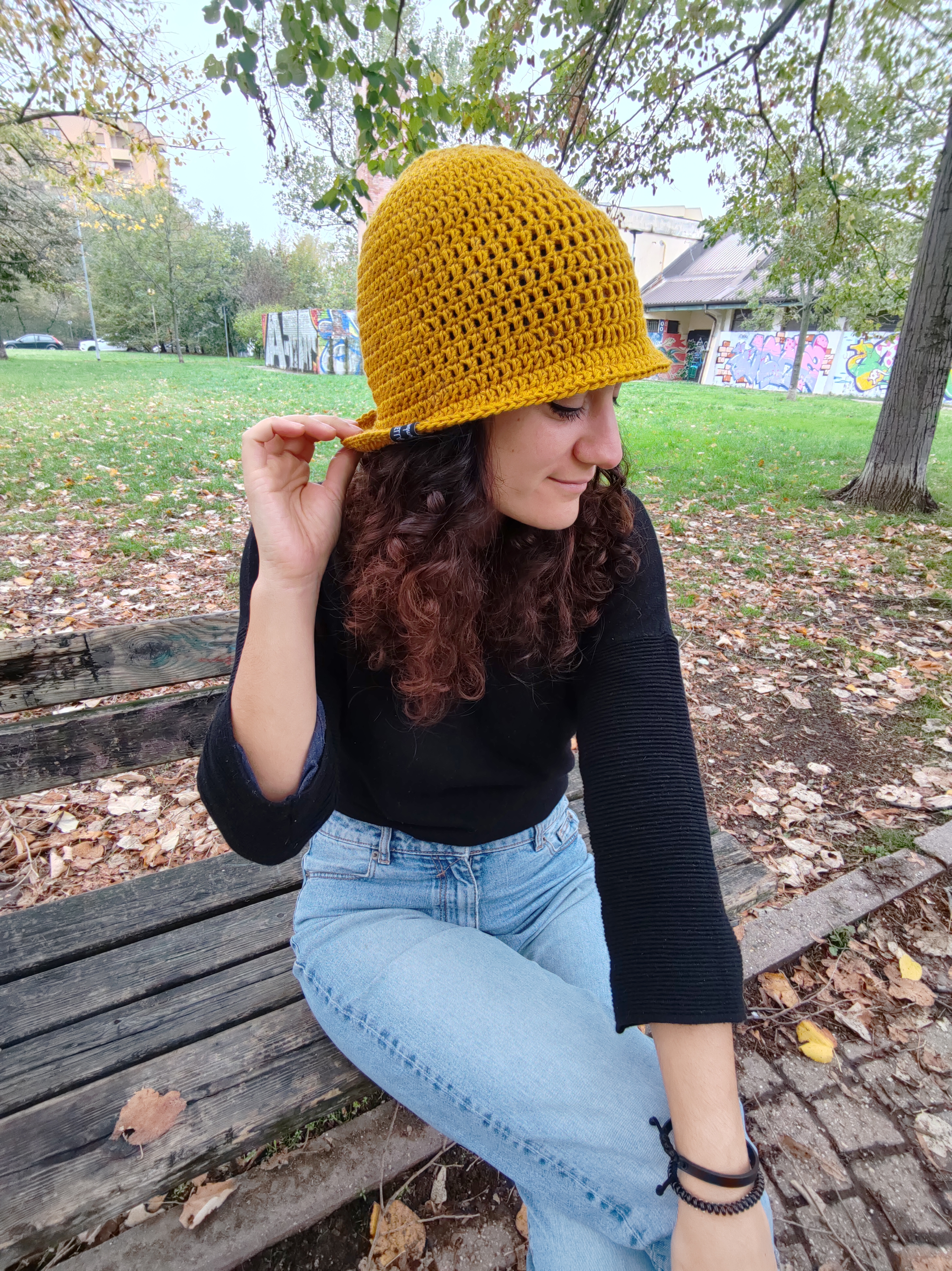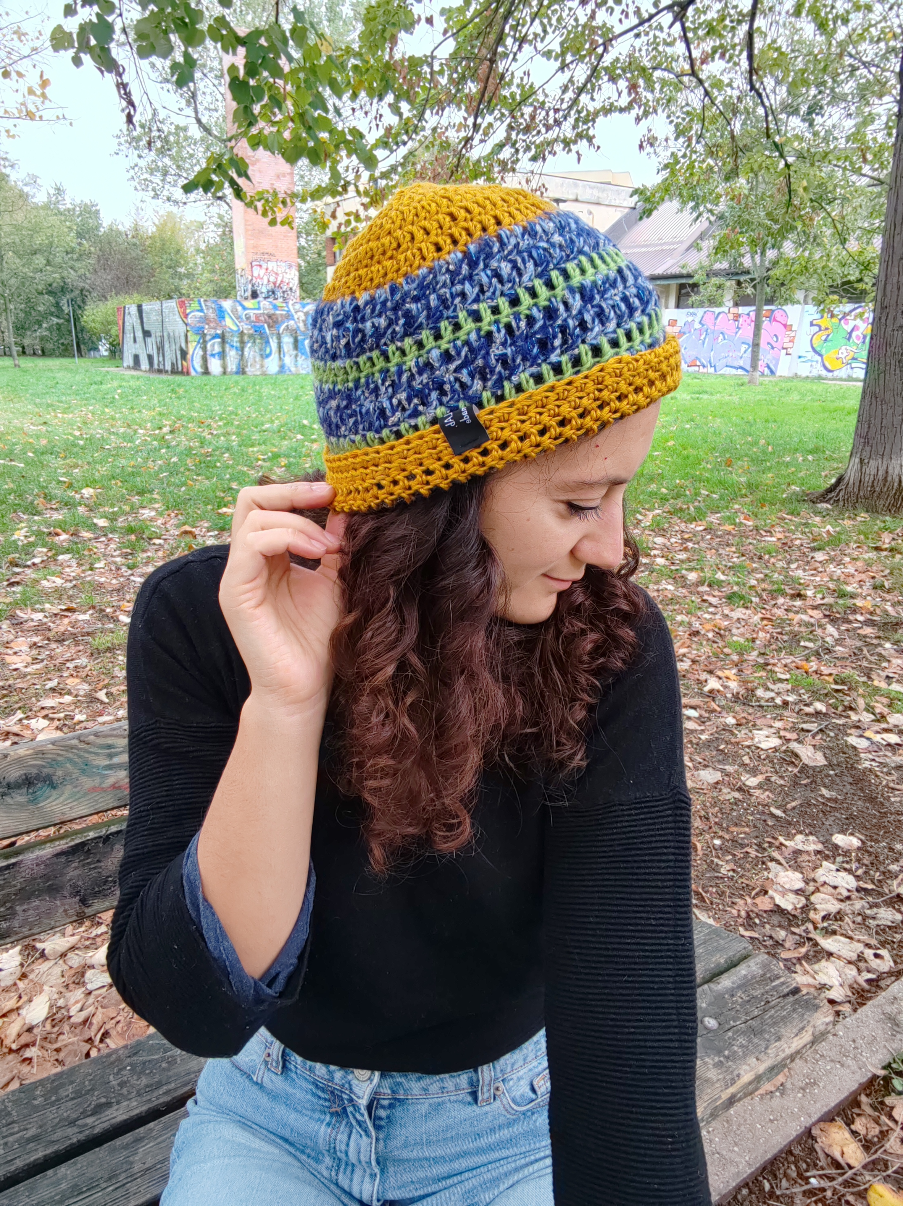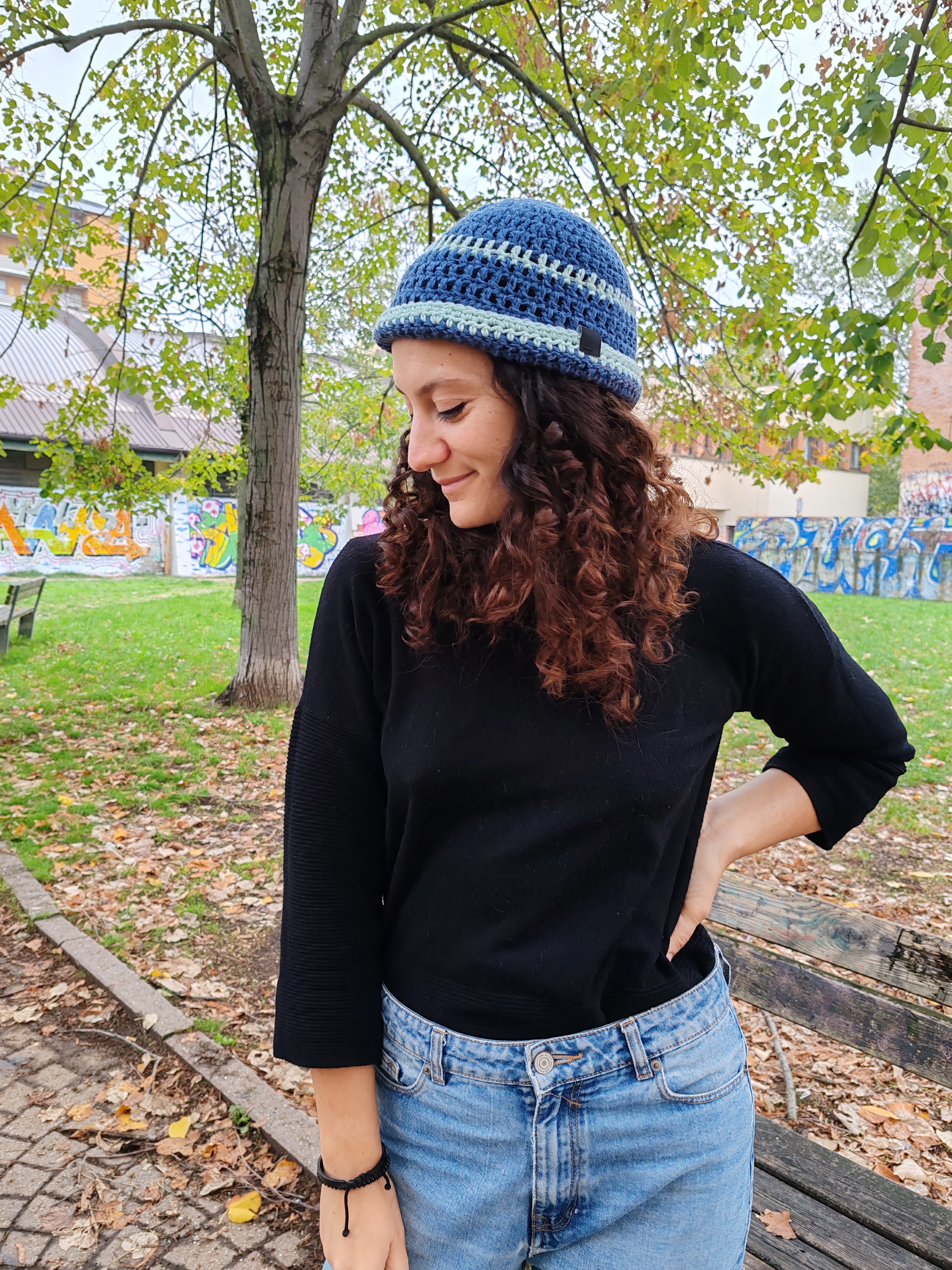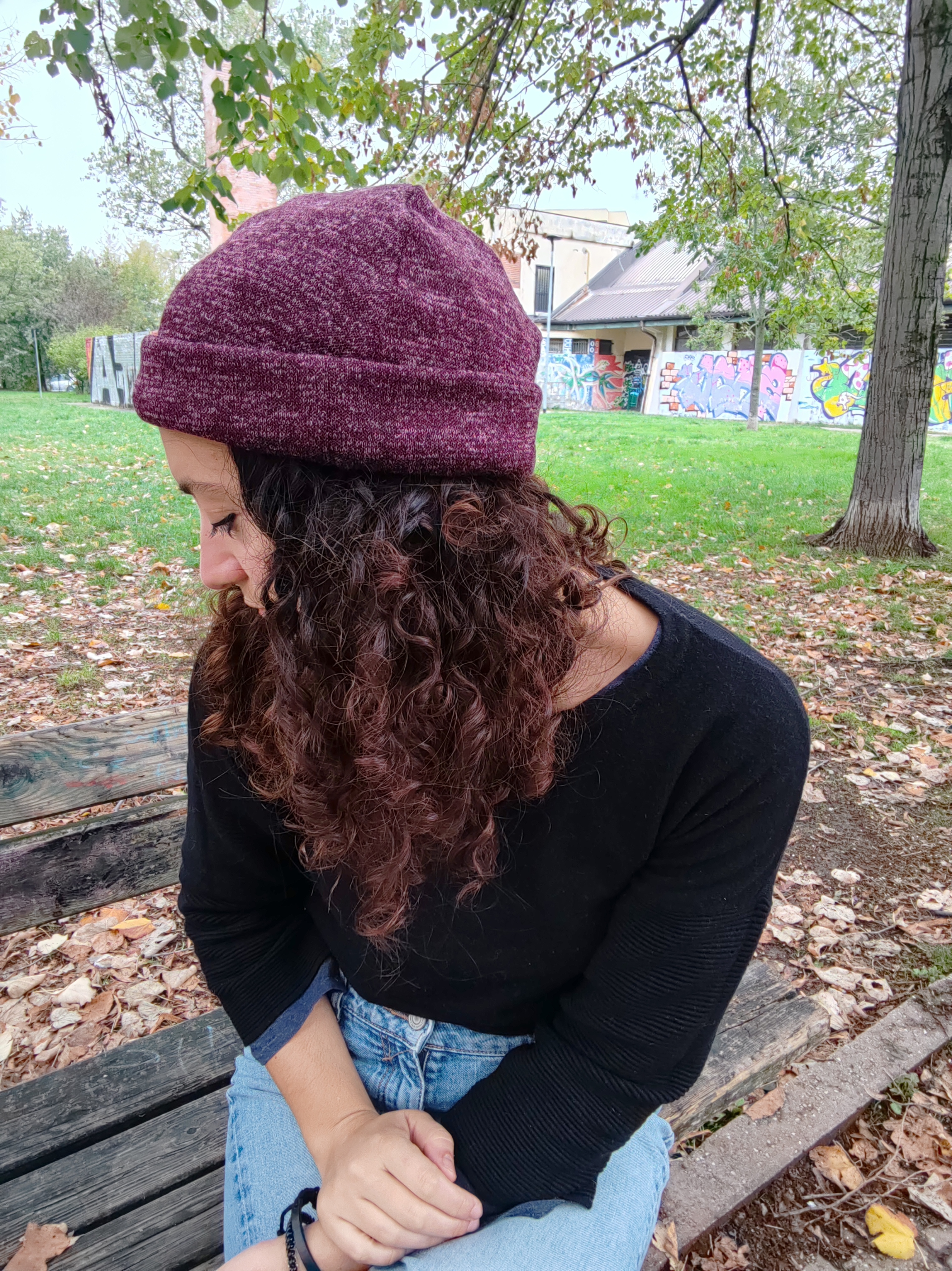 Cuffia leggermente svasata, in stile bucket. Puoi portarla con il risvolto o senza.