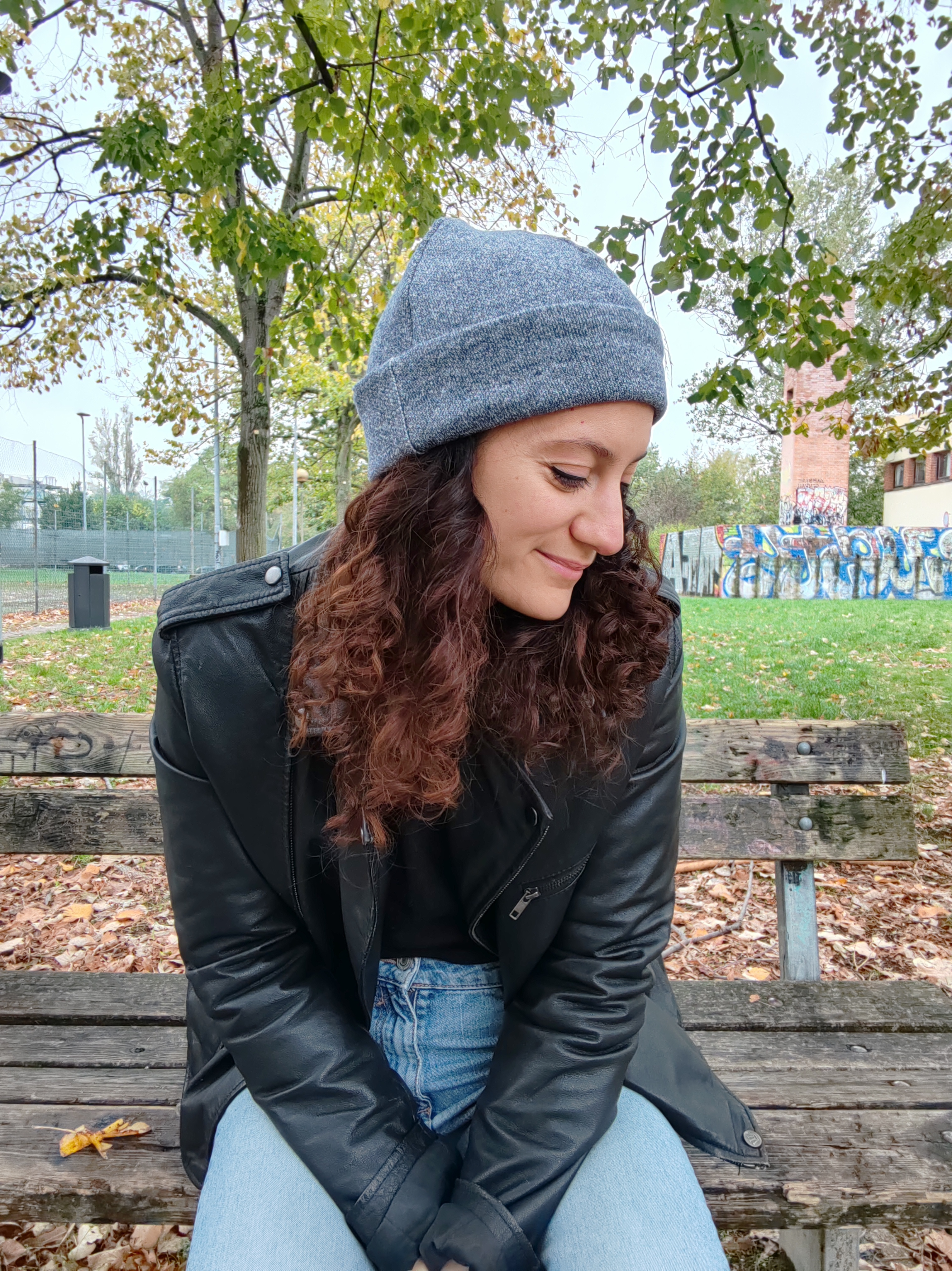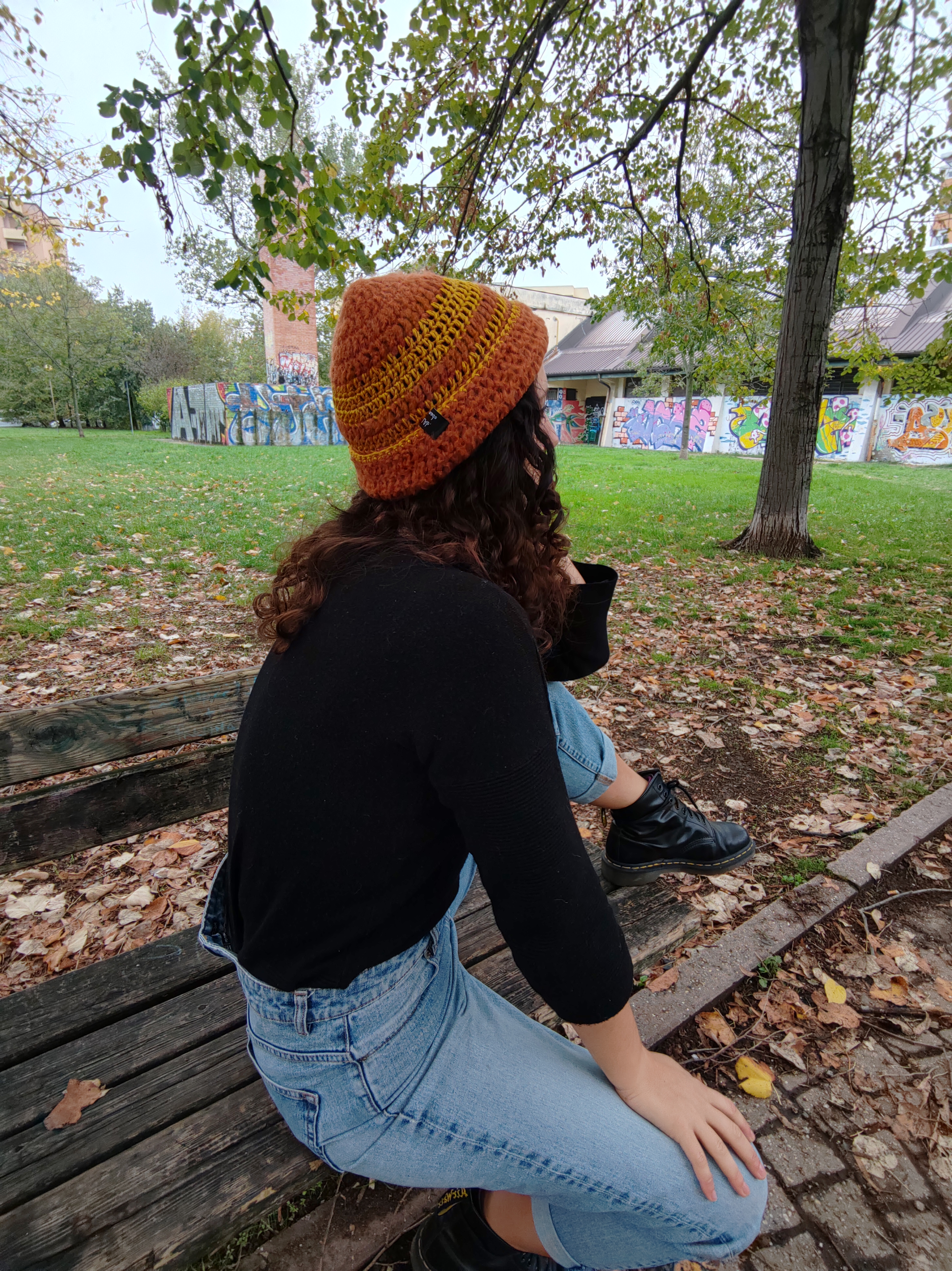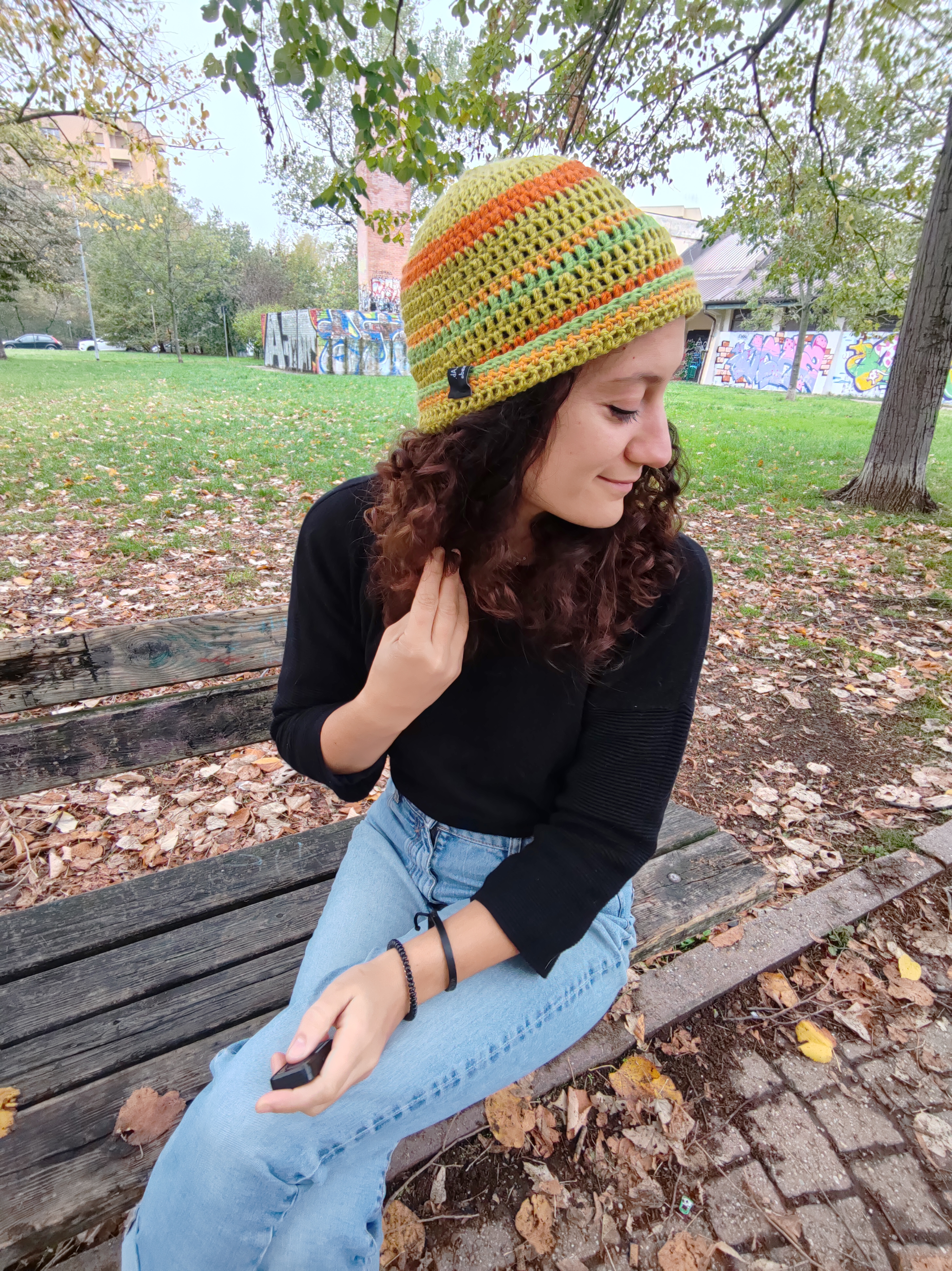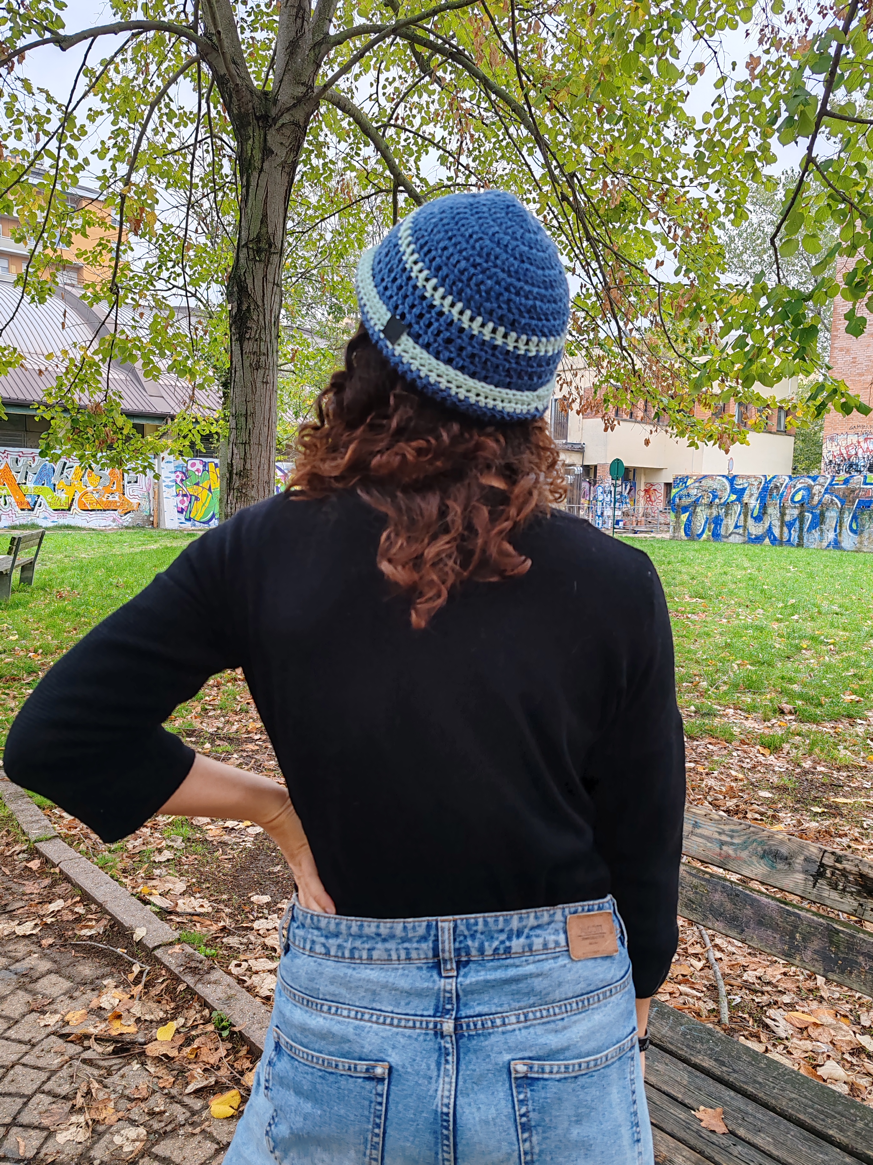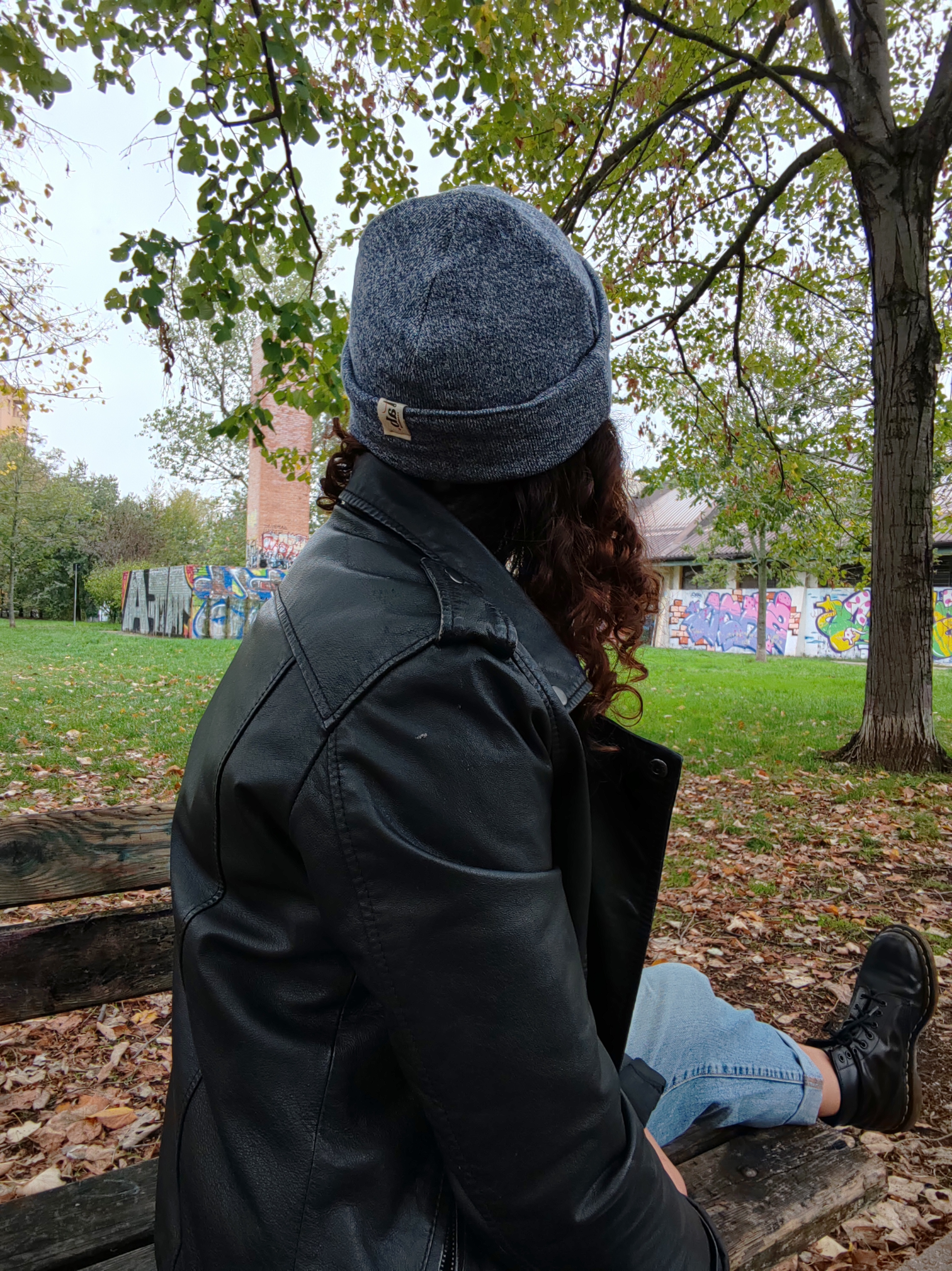 Cuffia leggermente svasata, in stile bucket. Puoi portarla con il risvolto o senza.