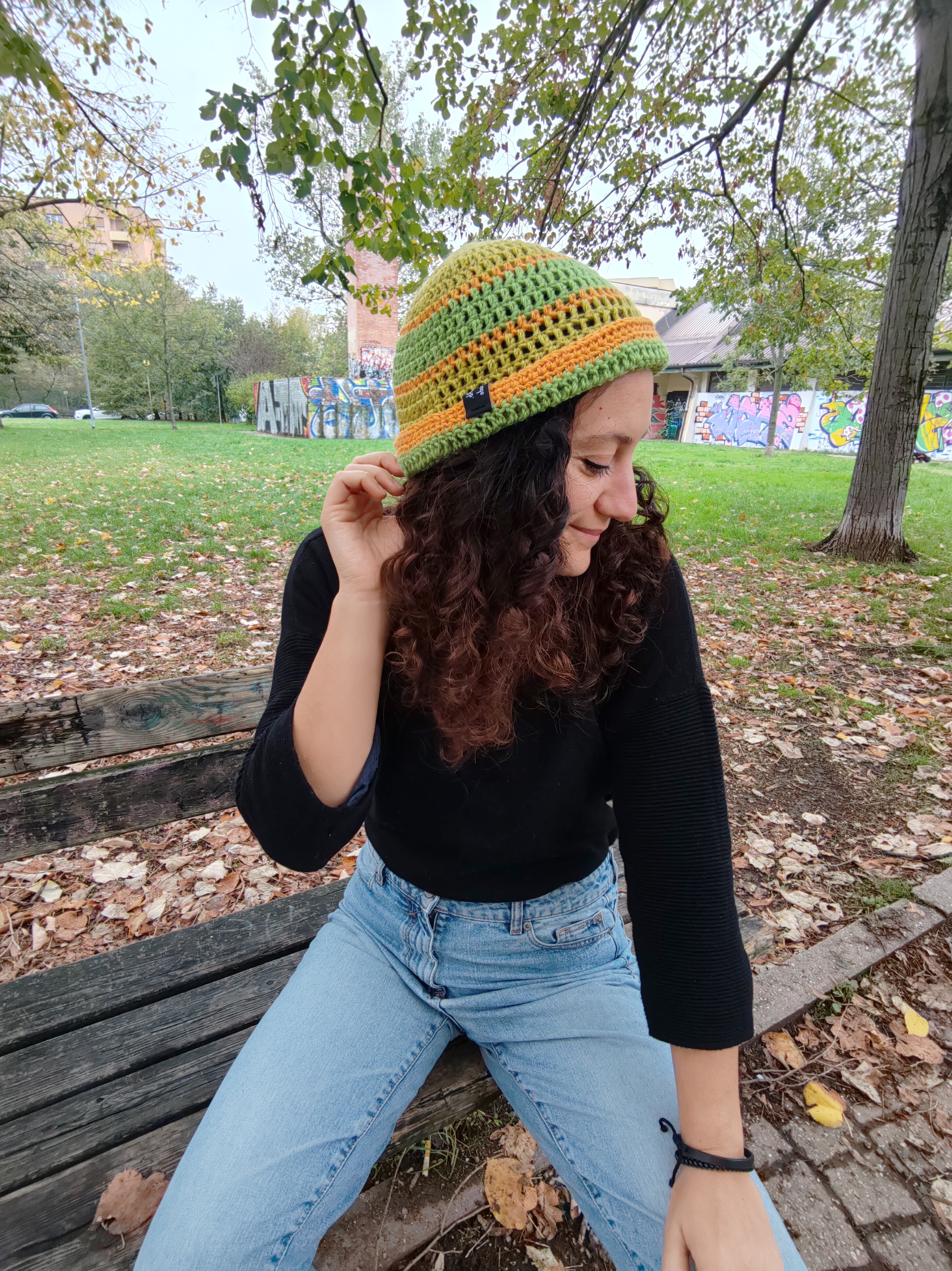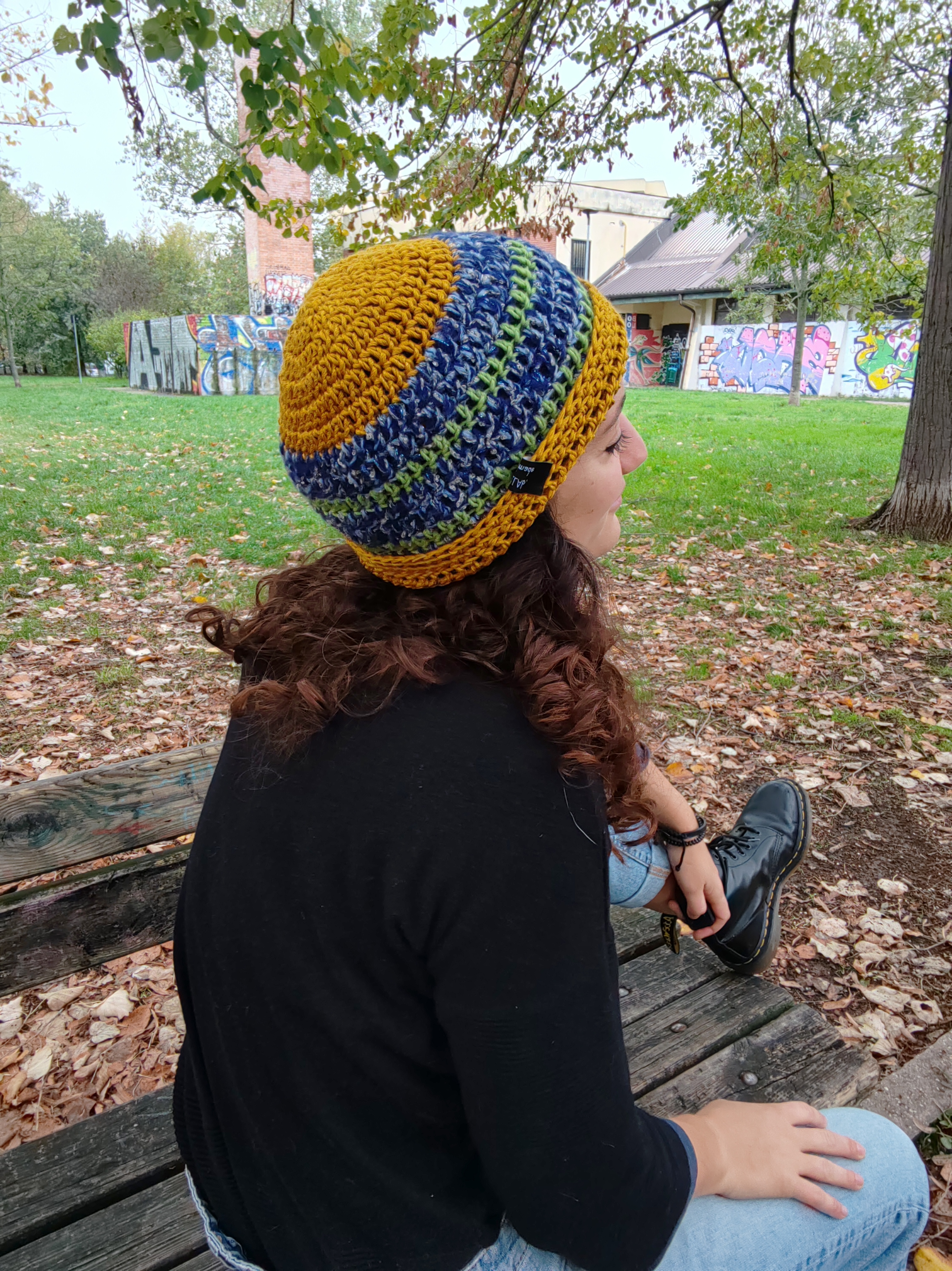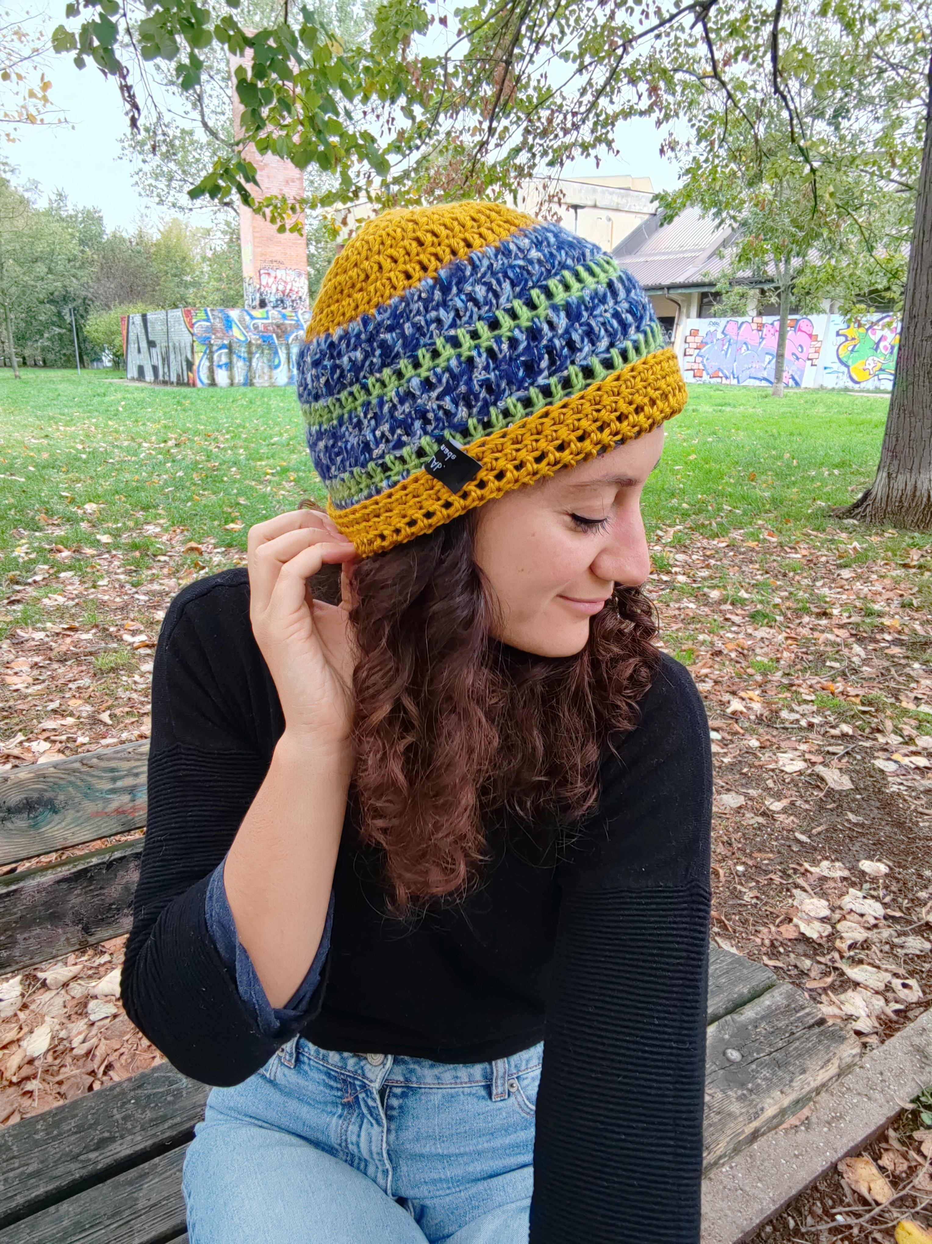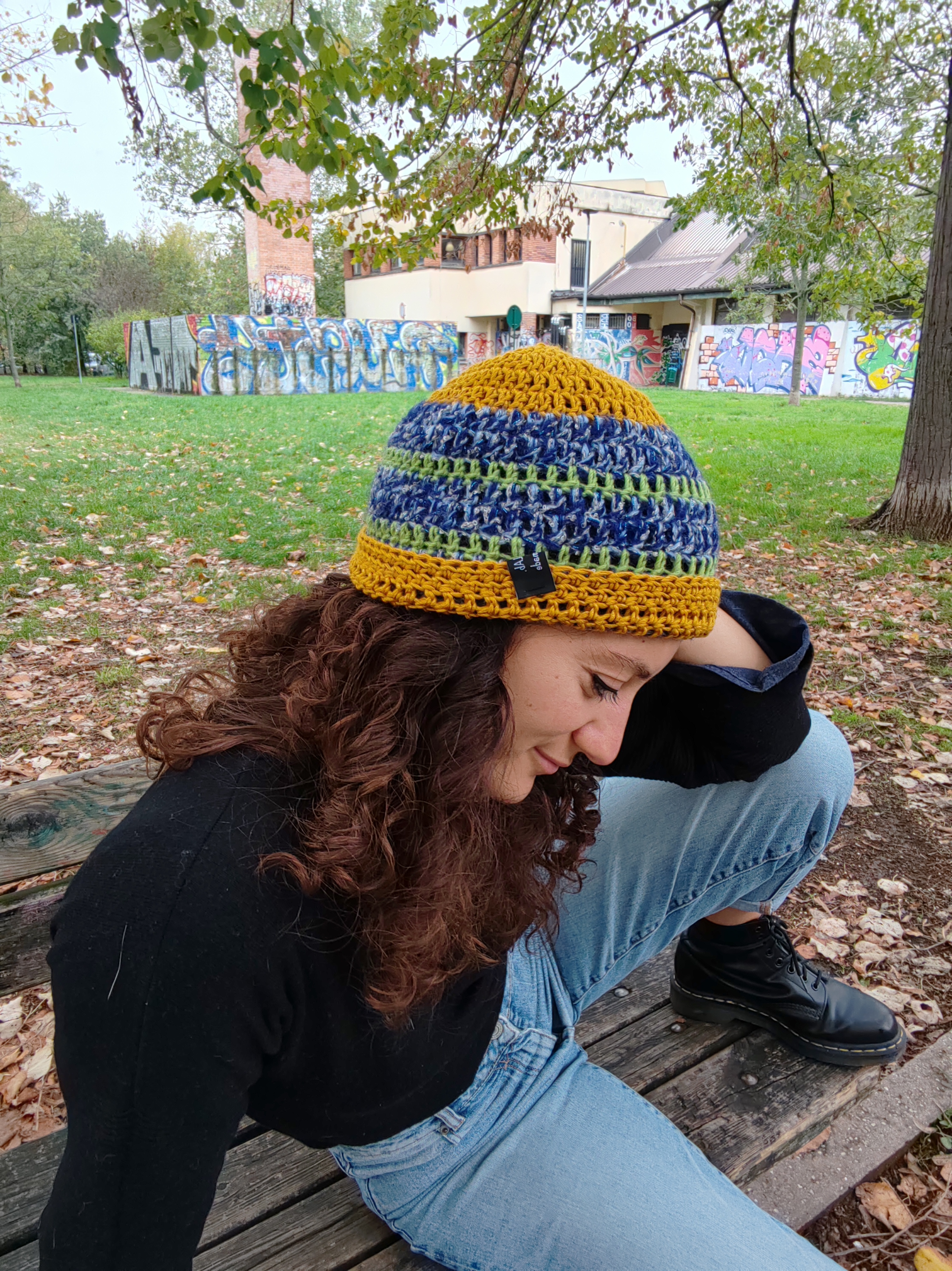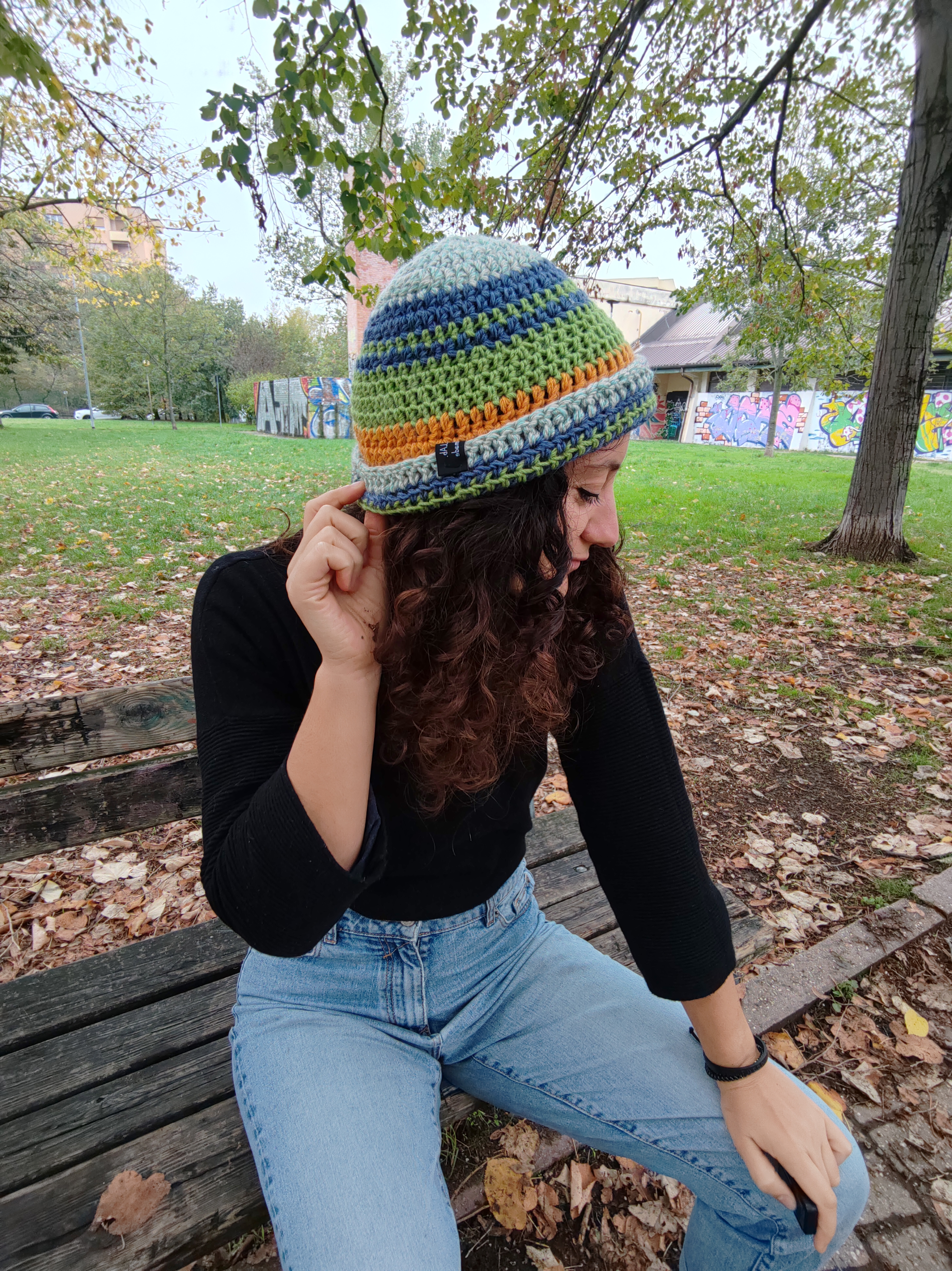 Tutti i cappellini e le cuffie in questa pagina sono dei pezzi unici. Spesso sono fatti con materiali di recupero e scarti di grandi aziende, questo li rende speciali e irripetibili.