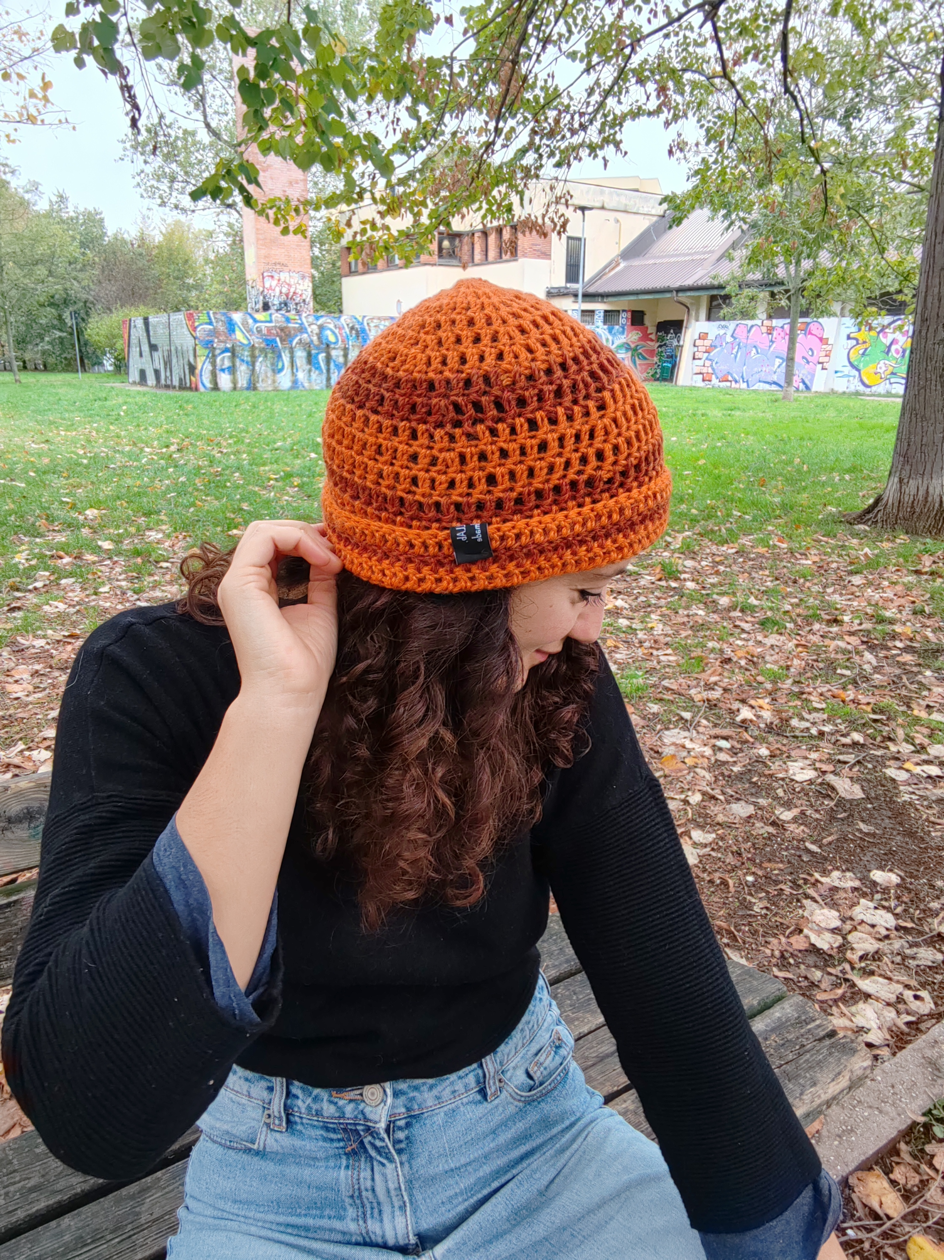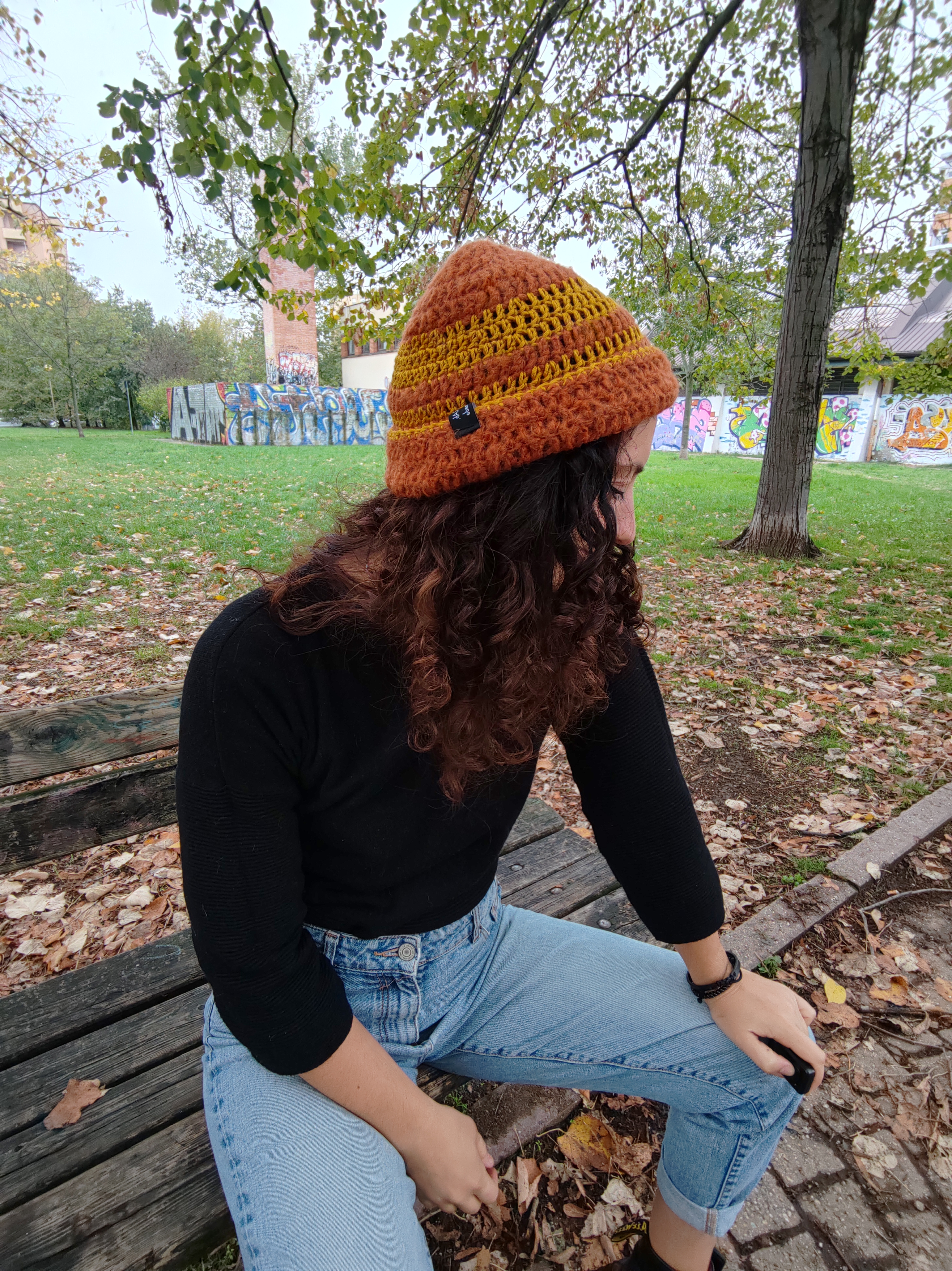 9. CUFFIA RIGHE MARRONE E ARANCIONE